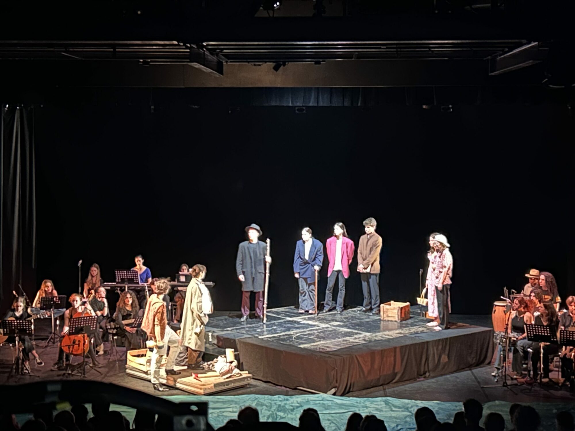Mercredi 22 mai et après une année de travail, les élèves de 1ère option facultative théâtre et musique du Lycée Baudelaire ont présenté au Théâtre des Collines Une Tempête adaptation par Aimé Césaire de La Tempête de Shakespeare. Une soirée sous le signe de la créativité où les élèves ont pu grâce à l’esthétique choisie, entrer de plain-pied dans la réécriture d’une œuvre et comprendre une adaptation qui s’attache à dénoncer le colonialisme. Un Projet dirigé par Antoine Guillot, avec Antoine Piel, professeur de théâtre et Sabrina Liechti professeure de musique. Bravo à eux pour cette première qui sera suivie le 28 mai par une présentation à Bonlieu, Scène Nationale Annecy.