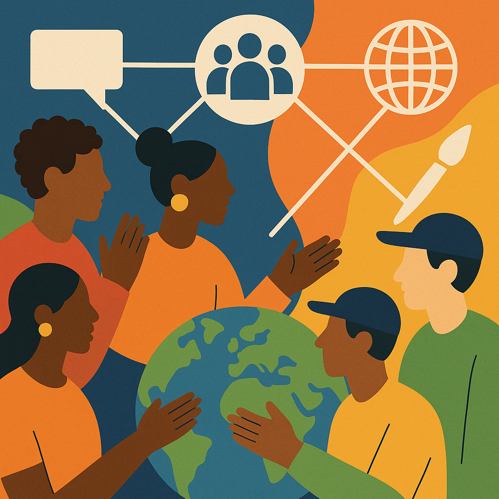 Ce réseau — qui rassemble des jeunes, des chercheur·ses, des pédagogues, des artistes et des professionnel·les de différents pays — s’inscrit dans la dynamique de la recherche-intervention menée depuis plus de vingt ans autour des thèmes des jeunes, des inégalités sociales et des périphéries. Il cherche à faire circuler des expériences, des idées et des pratiques entre territoires très différents afin d’outiller les jeunes à penser leur place dans le monde et dans la démocratie.