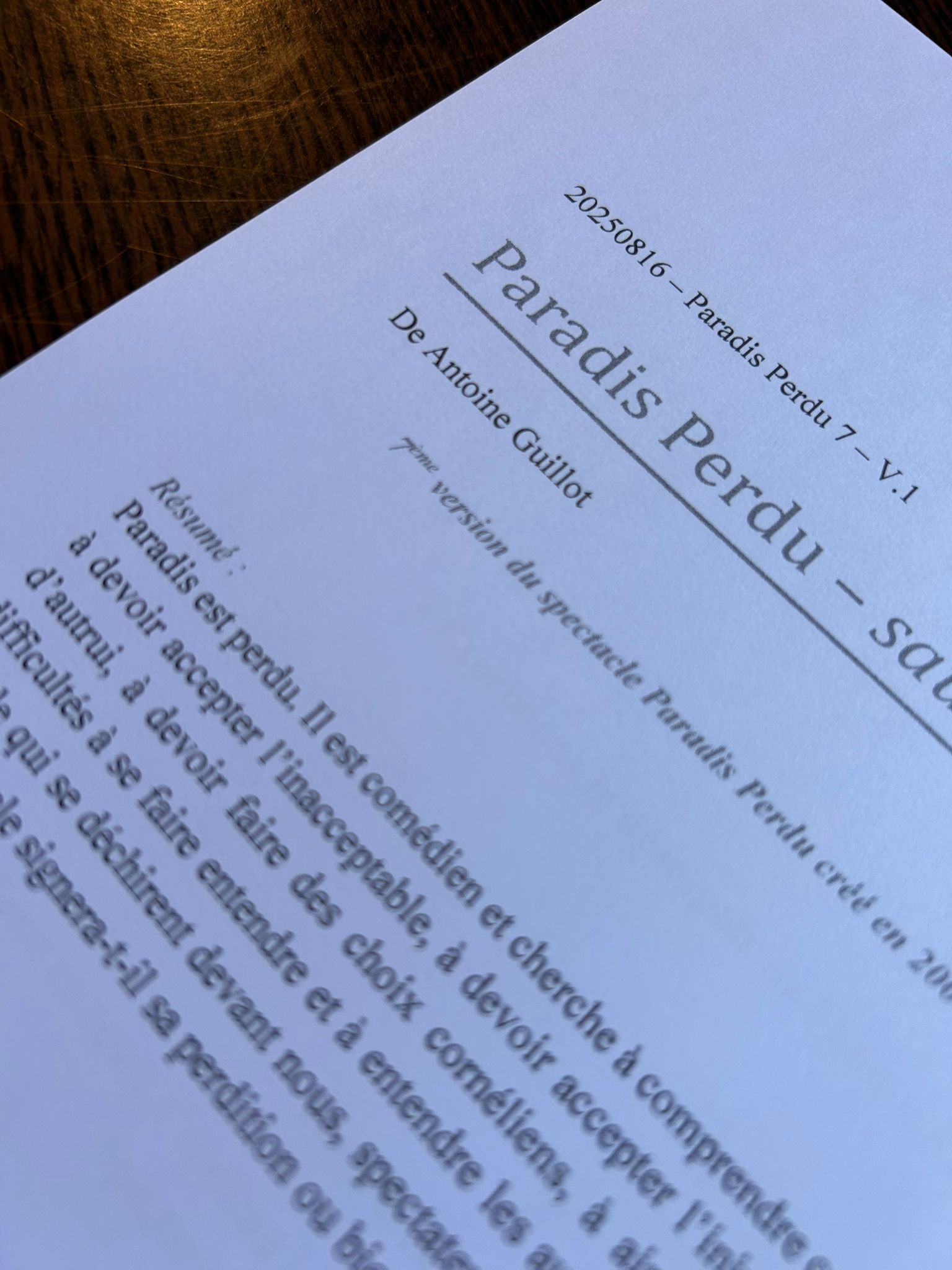 Cette étape marque un tournant dans le processus de création : il s’agit de la huitième version du spectacle, et du troisième comédien à s’emparer de cette matière, après Antoine Guillot et Antoine Formica. Le travail s’est recentré sur l’essentiel : affiner le texte, en éprouver les exigences, et accompagner Jérémie Buatier dans une appropriation personnelle de cette parole.
