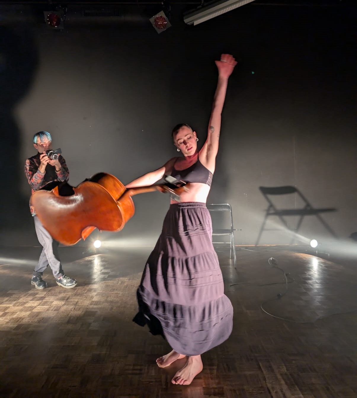 Tournage du teaser de Au Creux de la brèche, ce jeudi 28 novembre à Rumilly à l’OSCAR (Office Socio Culturel de l’Albanais et de Rumilly) avec Yvan Vindret, Camille Dégeorges Ruffelaere et Jérémie Buatier. Saisir l’intensité des tableaux et des nuances de cette création 2024 pour entrer dans ce spectacle performance où musique, danse, chant se lient subtilement à la voix de Camille Dégeorges Ruffelaere et de son violoncelle. A découvrir bientôt sur le site de La Compagnie Caravelle. Tous nos remerciements à l’équipe de l’OSCAR pour son accueil chaleureux et bienveillant.